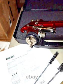 Joli pistolet de pulvérisation HVLP DeVilbiss EXL 520 avec une bague de retenue d'air noire et un bouchon d'entrée d'air noir. Donne au pistolet un joli look. Malette de transport rembourrée en mousse incluse avec logo DeVilbiss fixé à l'avant. Le pistolet a le jeu de buses de 1,4 mm installé. Veuillez vous référer aux images pour voir à quel point ce pistolet est beau.