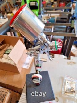 Je l'ai inspecté très attentivement et il n'y a aucun signe d'utilisation avec de la peinture. Le pistolet est le modèle HVLP à alimentation par gravité avec l'ensemble de buse de 1,4 mm. Il comprend le manuel original et la documentation ainsi que la trousse à outils et les clips de codage couleur.